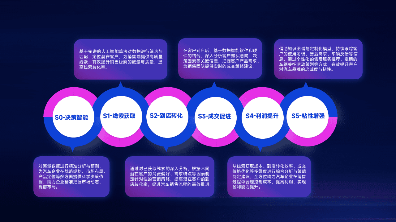 通过拓宽潜在客户来源、、优化线索分配并提高到店转化率,,,以增强销售效率。。。。同时,,,利用线索数据不断优化分析模型,,,,有效提升转化率,,,,扩大营销影响力。。
